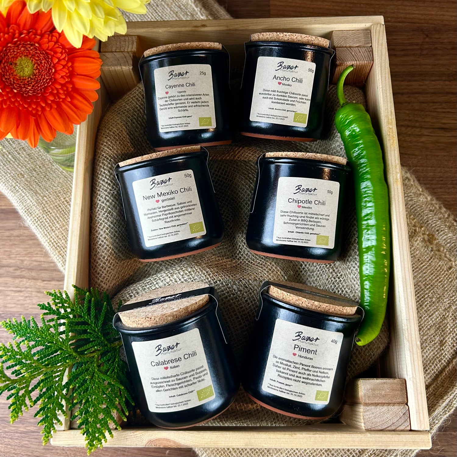 Grill Gewürze Set – „6 Bio-Mischungen für echten BBQ-Genuss“Grill Gewürze Set – „6 Bio-Mischungen für echten BBQ-Genuss“